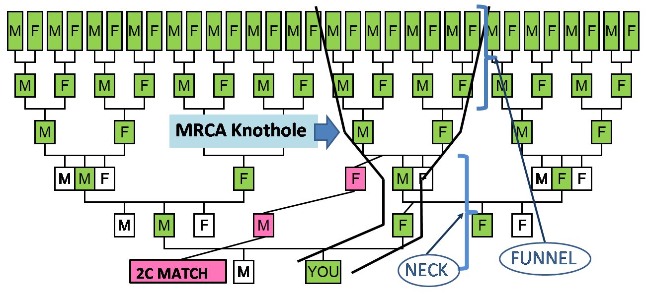 JUMP IN – Get your feet wet – take a utility on a trial run and see what it’s like! Start with the ‘One-to-one’compare – just click on that line. Enter your GEDmatch kit number in the first box; and someone else’s kit number in box 2. Usually someone has asked you to upload, and they should have given you their kit number. Then hit enter, or click on the Submit button. You’ll get a table of the DNA shared segment(s) with Chromosome, Start and End Locations, cM, SNP – this is the physical information about the DNA you share with a Match – see my blogpost here for more info. Under the chart are some other data, including “Estimated number of generations to MRCA” – please take this number with a grain of salt! It’s a calculated number. 1.0 means parent/child. As the number gets larger, it’s actually more of an average than anything specific. Don’t put a lot of stock into anything over 4.