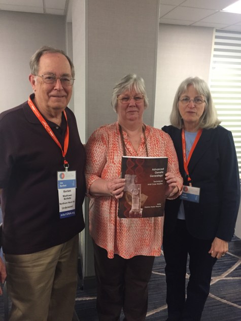 I should let you all know, in case you missed it, there is a new book on DNA which just came out. There are several beginner and intermediate books on DNA for genealogy already available. But to my knowledge this is the only one so far focused on advanced topics. There are 14 chapters, each by a different author with lots of genetic genealogy experience. I wrote Chapter 1: Lessons Learned from Triangulating a Genome. The Editor, Debbie Parker Wayne, and I were at the FamilyTreeDNA Genetic Genealogy Conference in Houston, TX on 23 March when we found out the book was available on Amazon. So Debbie made an impromptu announcement with the proof copy she had…
