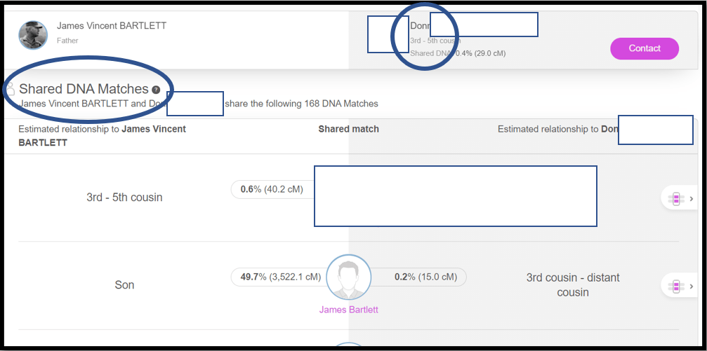So now “Don” is our base Match. Next we search/select Don at MyHeritage (we’ll use his full name, and check the cMs of the shared segment – just in case there there is more than one Match with the same name (I found about a dozen such cases).