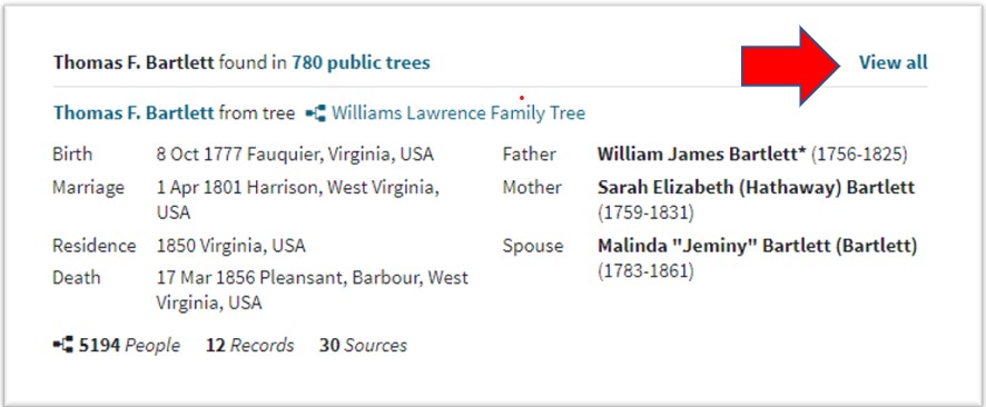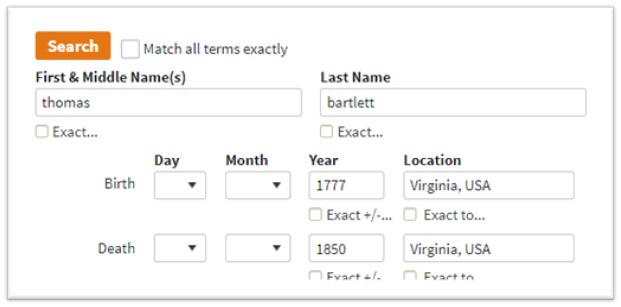 Note 2: if Ancestry offers a standard for the location, accept it. I had just typed “virginia” in the above, and accepted their standard of “Virginia, USA”