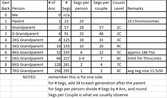 1. Learn: We can understand how TG segments originate in Ancestors – maybe 5 to 8 generations back – and pass them down to us, and our Matches. At each generation – coming down/getting closer to us – our Ancestors have more TGs – until our parents each pass down about 150-200 TGs to us.